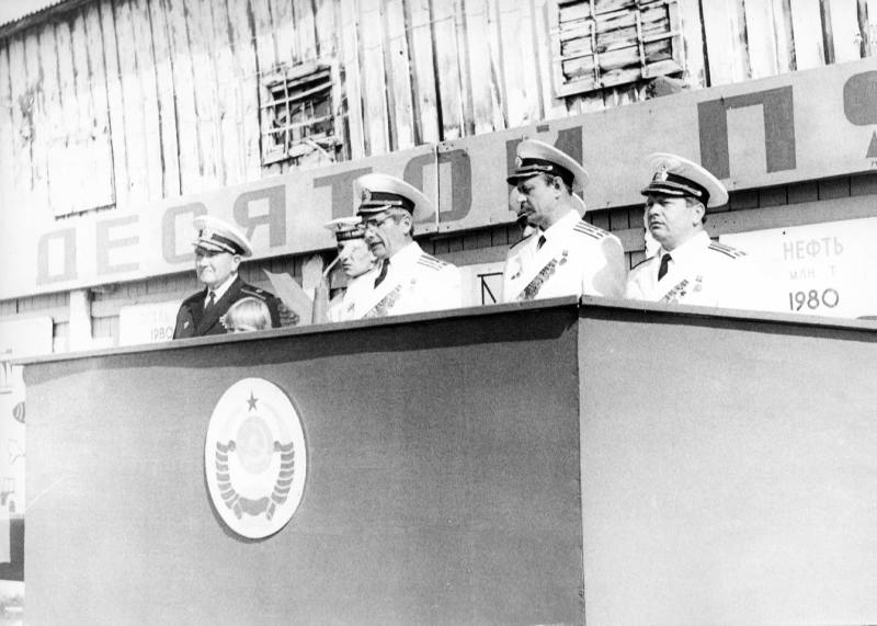День ВМФ 1978 год . На трибуне слева контр-адмирал в отставке Разумный И.А. , бывший начачальник разведки ТОФ, капитан 1 ранга Лукаш Д.Т., капитан 1 ранга Желонкин А.М., капитан 1 ранга Медведев В.А. |