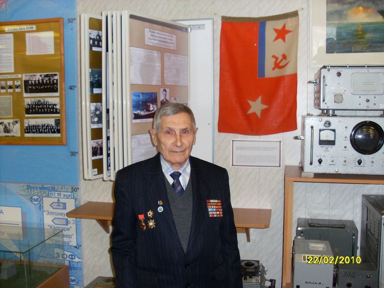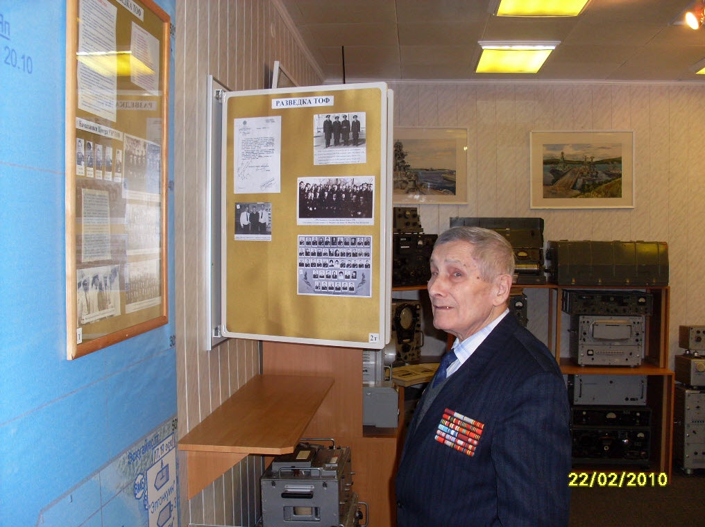 Первый командир 38 бригады кораблей ОСНАЗ ТОФ капитан 1 ранга в/о Лукаш Д.Т. в музее ЦМРО у стендов РЭР Тихоокеанского флота. |