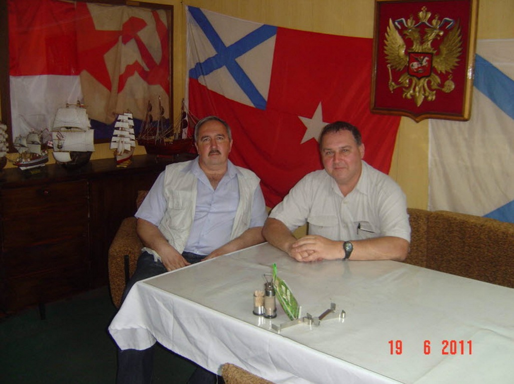 Ататолий Богданов и Андрей Гирлин в кают-компании срзк "Курилы", 19.06.2011 год. |