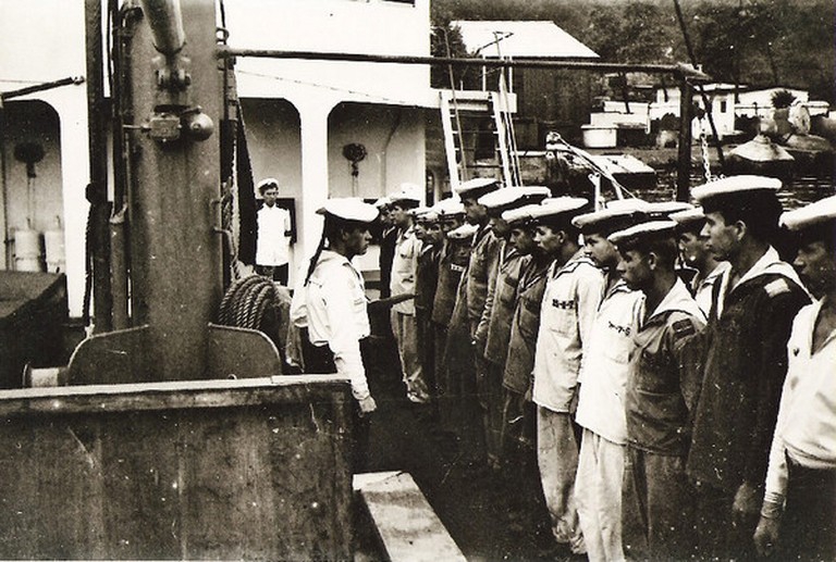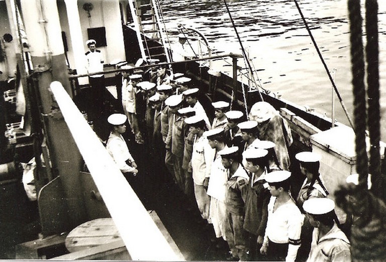 Экипаж мрзк "Протрактор", август 1965 год. В центре (сидит) командир корабля капитан-лейтенант Никифоров Ф.П. |