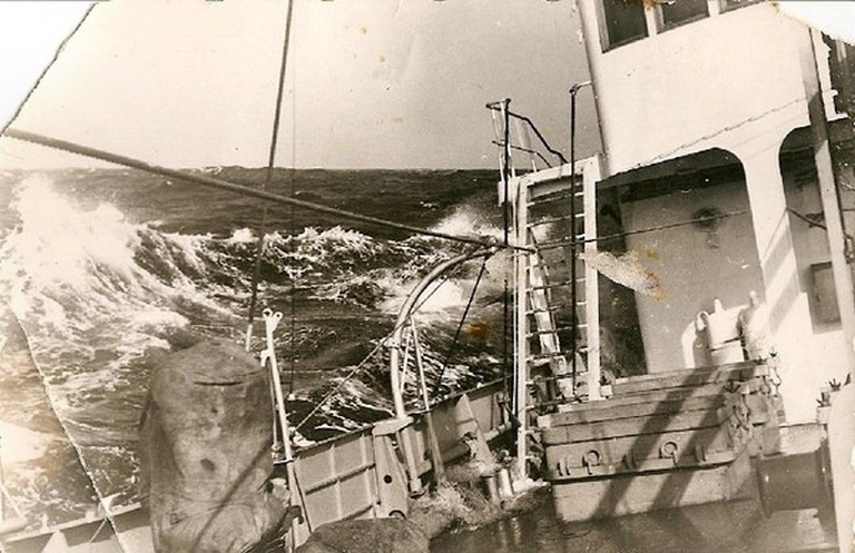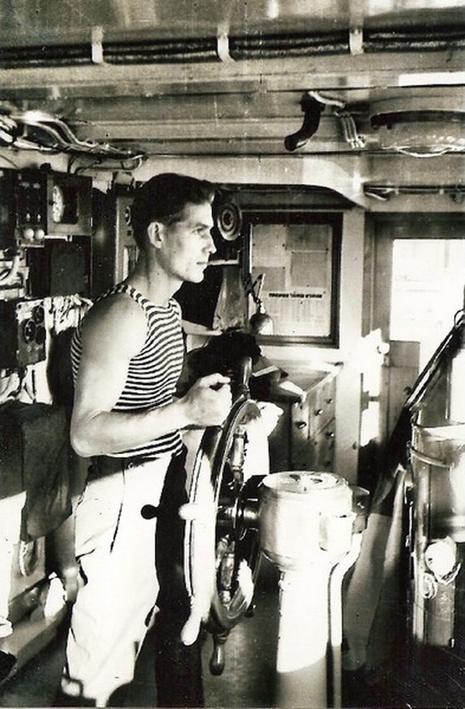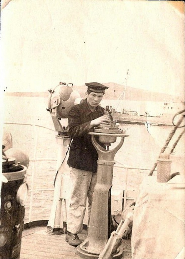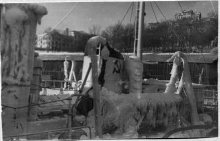 "При возвращении из похода в январе 1970 года в Японском море попали в шторм, обледенение и пустые танки чуть не отправили корабль на дно морское. Командир, капитан 3 ранга Абросимов Юрий Иванович, принял решение заполнить пустые топливные танки морской водой, тем самым спас положение. Плохо управляемый, подобный ледяной глыбе "Протрактор", лихо пришвартовался к стенке 37 причала..." Швец В.Н. |
