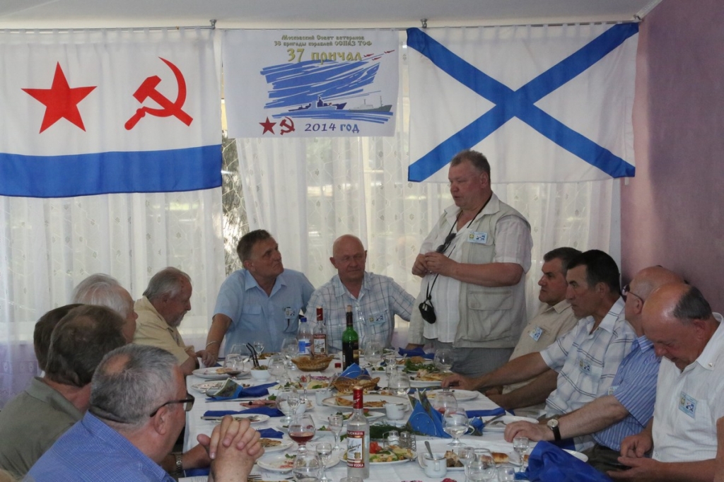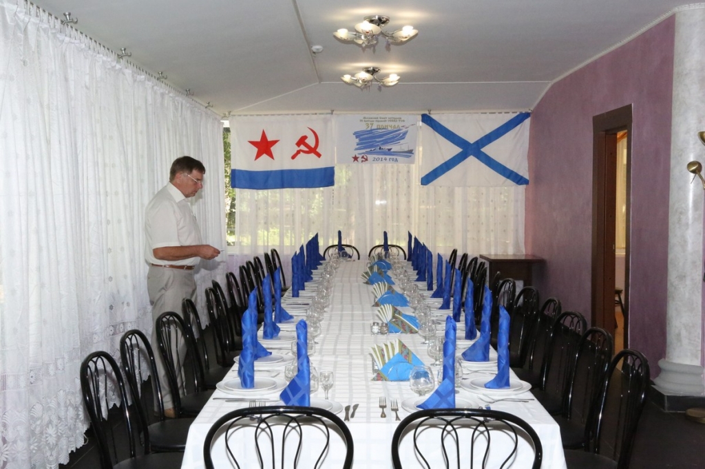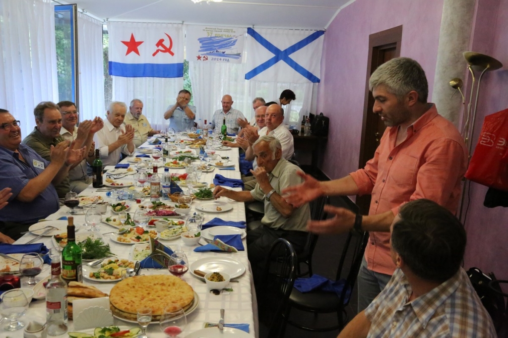 Гости ресторана, отмечавшие свой праздник, поздравили ветеранов бригады с наступающим Днём ВМФ - подарили три осетинских пирога, как знак уважения к морякам. Мужчина, поднесший подарок, сказал хороший осетинский тост - за флот, дружбу и Россию. |