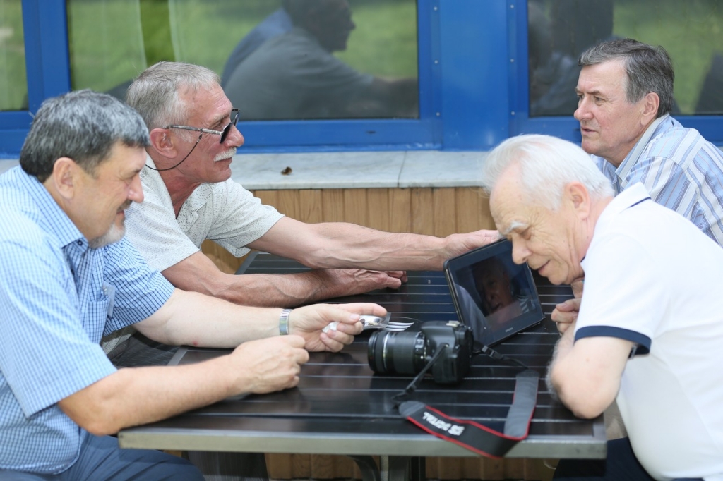 Пискорский Михаил Александрович, Волнин Михаил Алексеевич, Бухарев Николай Иванович и Комаров Вячеслав Александровия во время связи с нашим товарищем в Украине Гуменным Виктором Владимировичем |