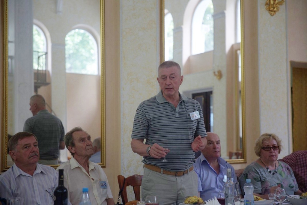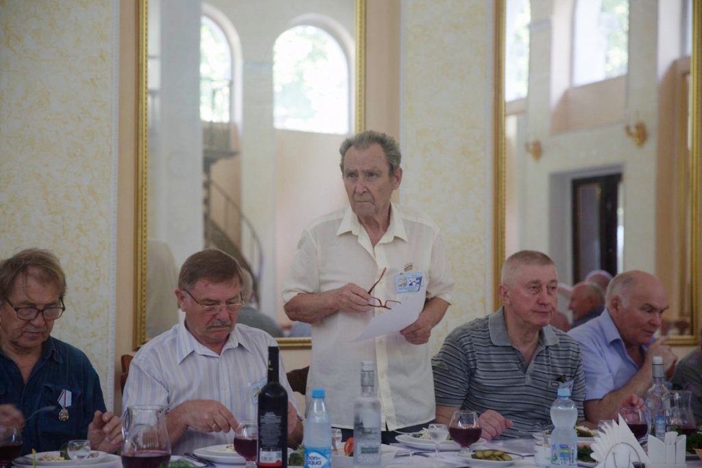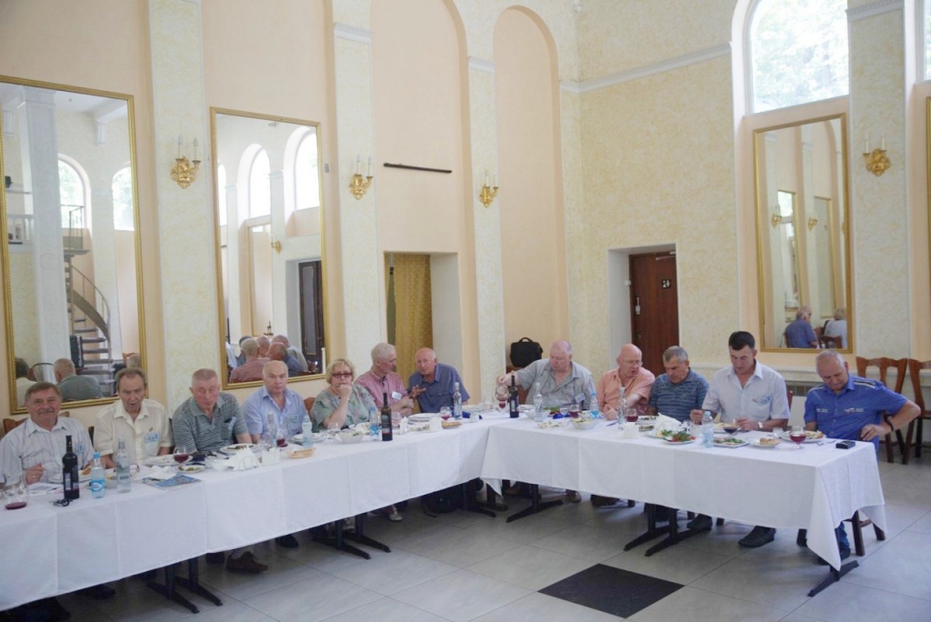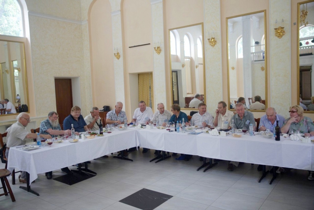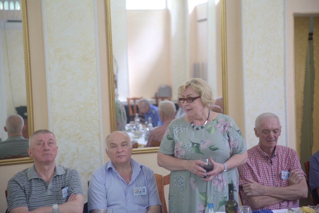 Участники встречи (правое крыло). Слева направо: Челюскин Сергей Николаевич, Антипов Николай Васильевич, Маркин Александр Аркадьевич, Иванов Сергей Владимирович, Сусликова Любовь Васильевна, Иванов Александр Михайлович, Малахов Михаил Павлович, Митрофанов Анатолий Алексеевич, Синько Василий Васильевич, Макаров Андрей Васильевич, Галкин Владимир Евгеньевич, Трубаров Анатолий Георгиевич. |