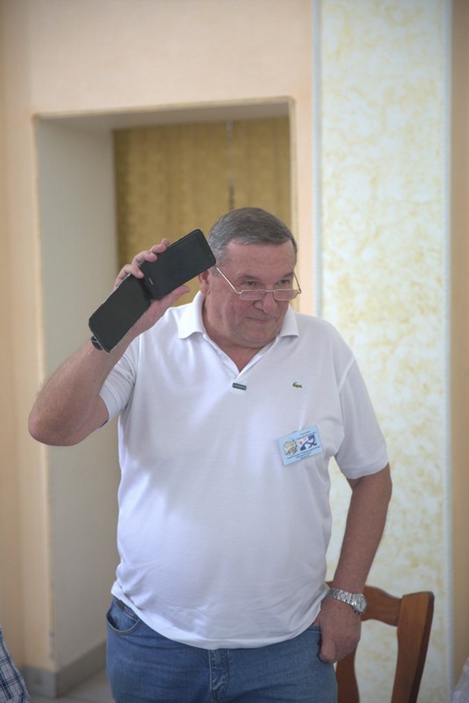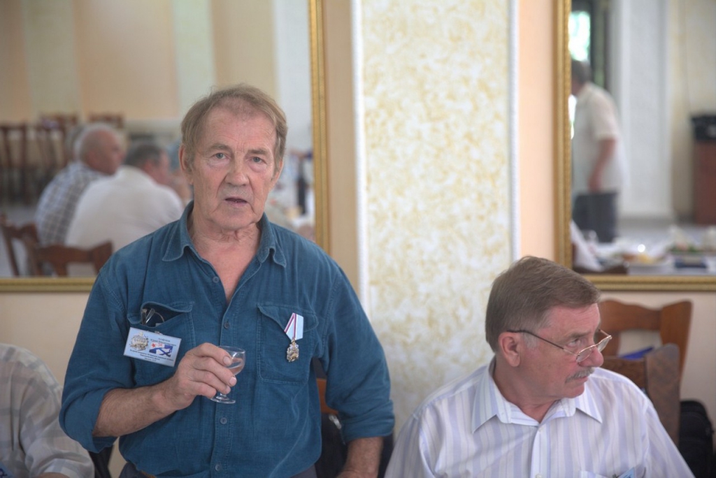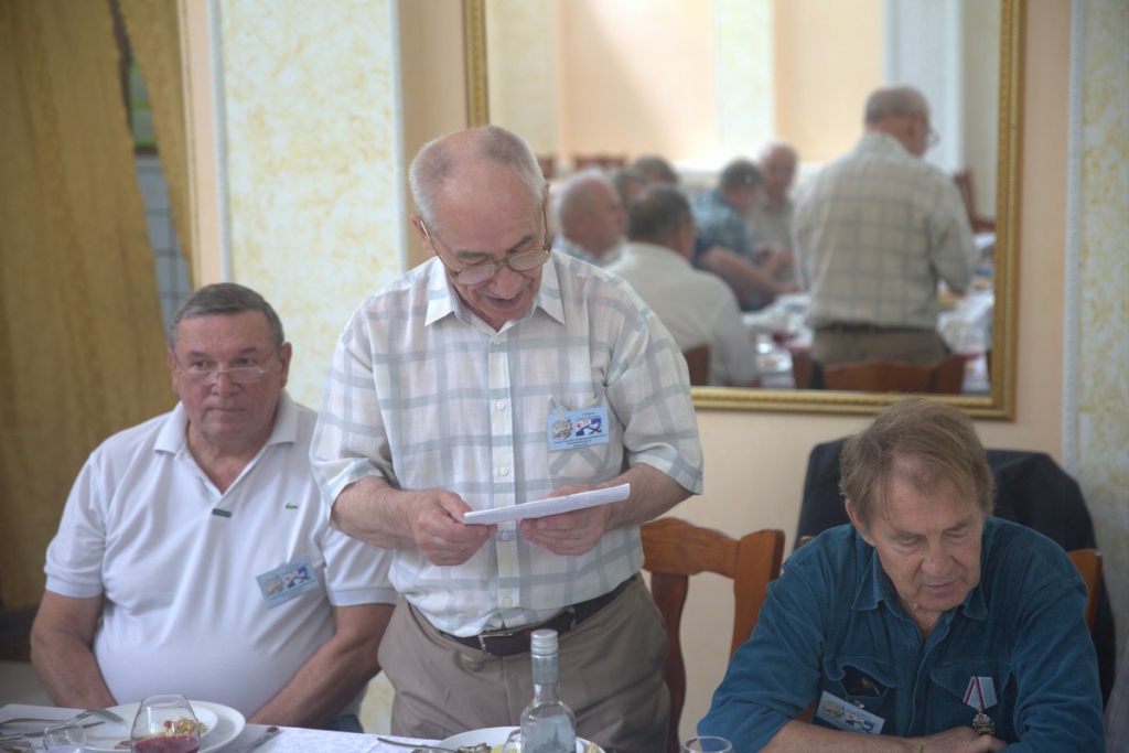 Кононенко Геннадий Викторович через спикерфон телефона озвучивает поздравление с Днем ВМФ от Козловского Вячеслава Владимировича из Владивостока. Немного ранее было передано Ивановым Александром Михайловичем поздравление от Максименко Юрия Спиридоновича также из Владивостока. |