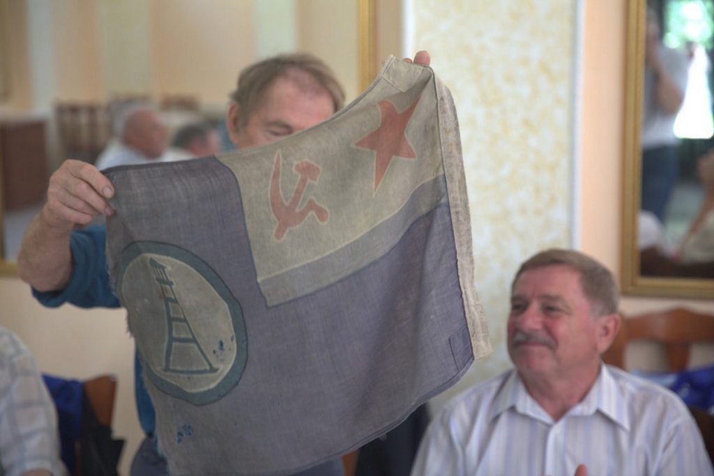 Агафоноф Юрий Владимирович демонстрирует флаг мрзк "Дефлектор" |