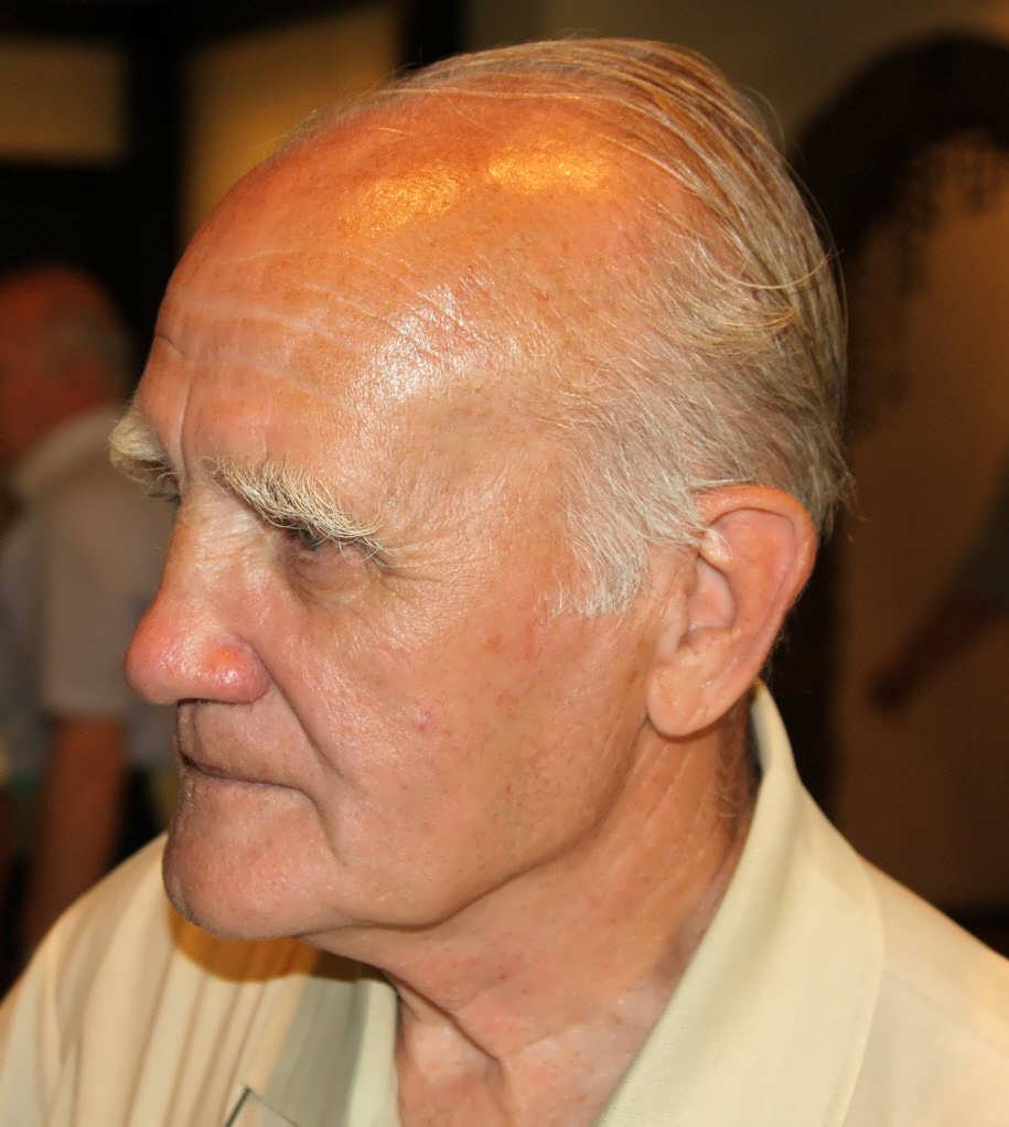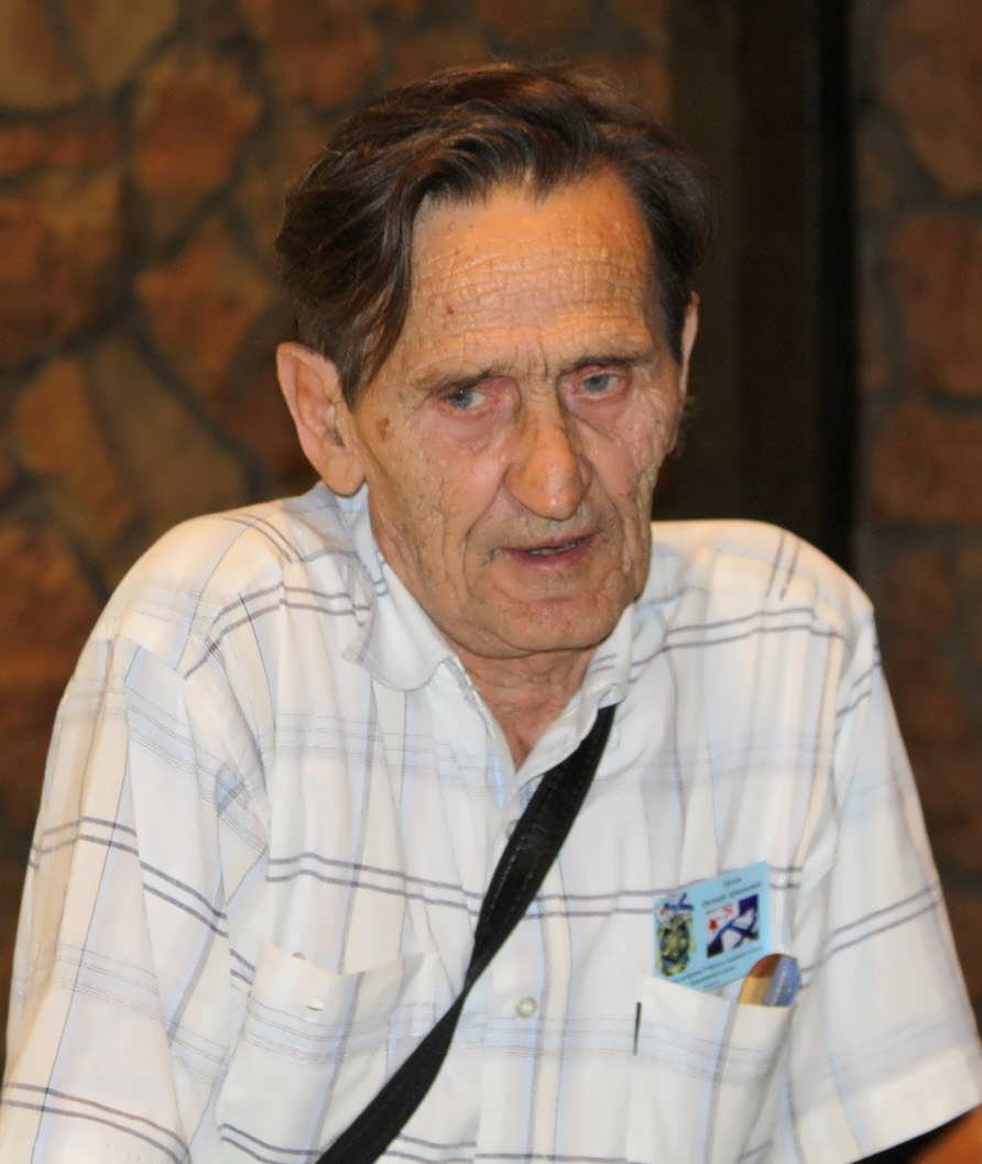Мисник Анатолий Михайлович у стенда с фотографиями. |