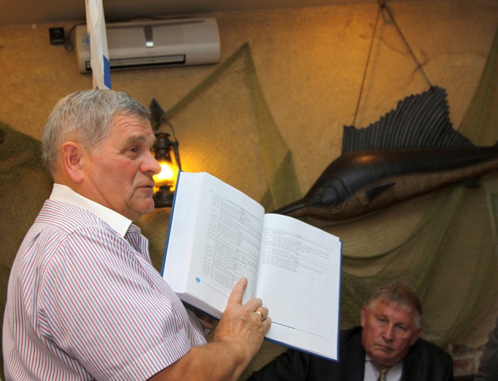 Челюскин Сергей Николаевич докладывает участникам встречи о разработанном Положении Совета ветеранов 38 бригады кораблей ОСНАЗ ТОФ "37 причал" (Московского филиала Совета ветеранов Разведки ВМФ). |