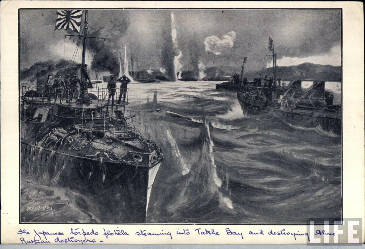 Американские рисунки из журнал Life иллюстрирующие Русско-Японскую Войну. Чувствуется несколько стилей и к сожалению не подписано авторство рисунков, но на многих чувствуется что рисовали если не очевидцы то по крайней мере люди хорошо разбирающиеся в кораблях которые они рисовали.